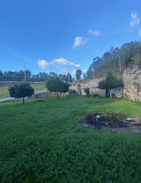 Jardim com arvores de fruto;
