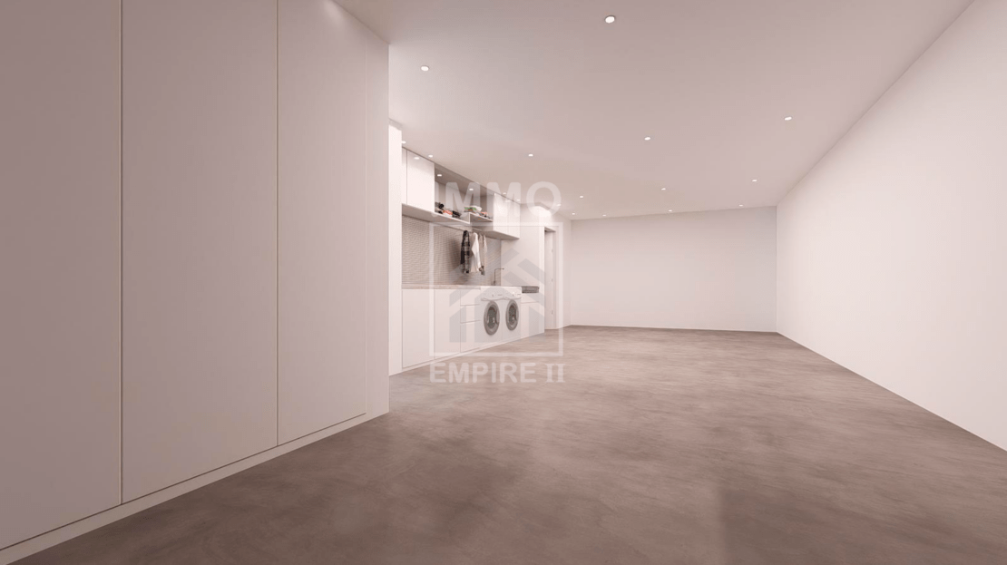 Roupeiros embutidos lacados a branco mate, para máxima organização e estética.